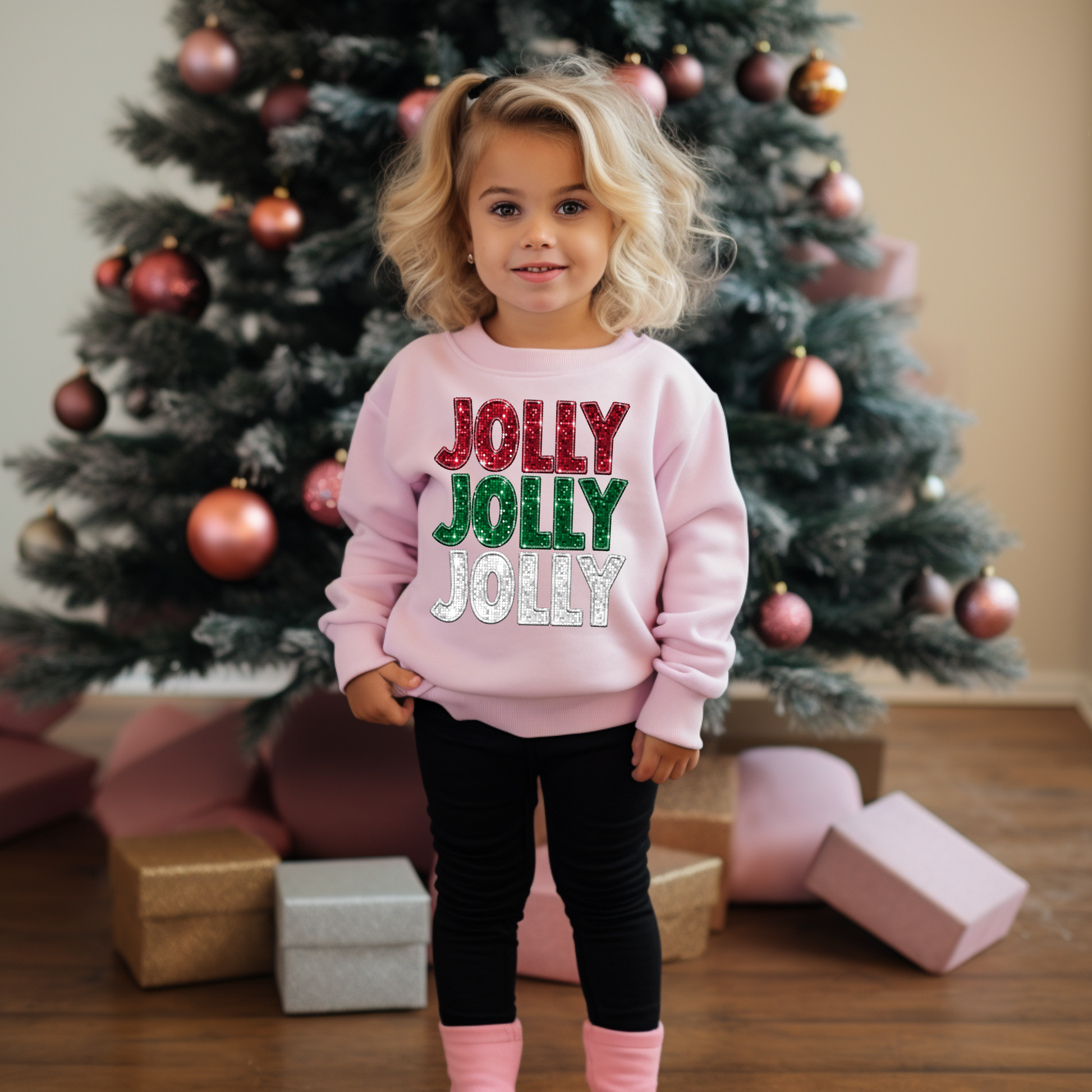 Faux Glitter Jolly- Long sleeve tee