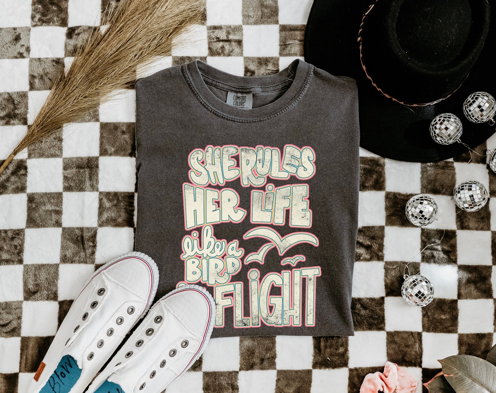 DTG printed on comfort colors in the color - Pepper